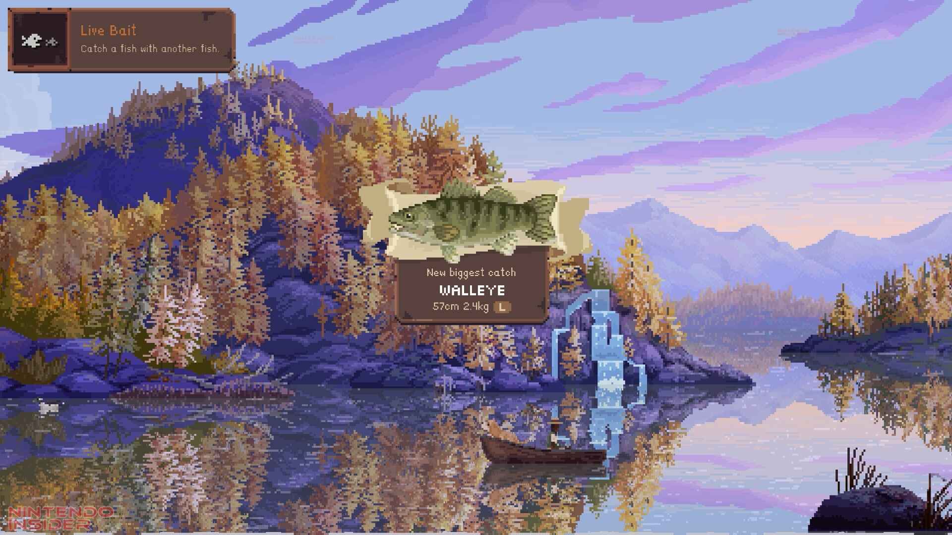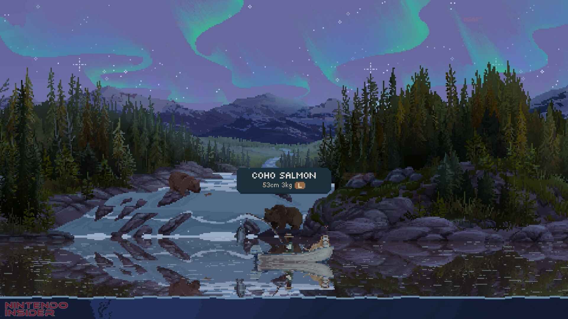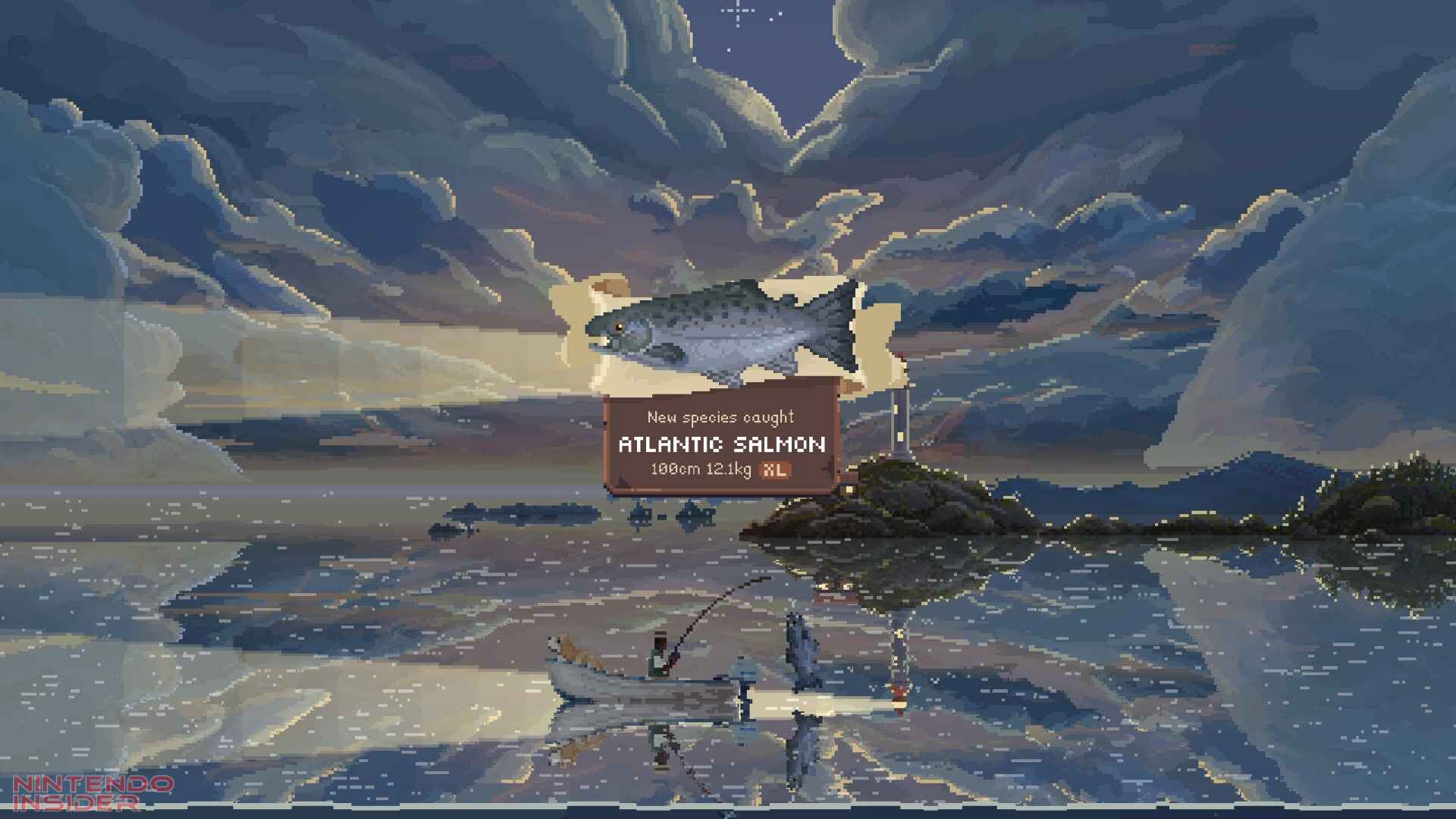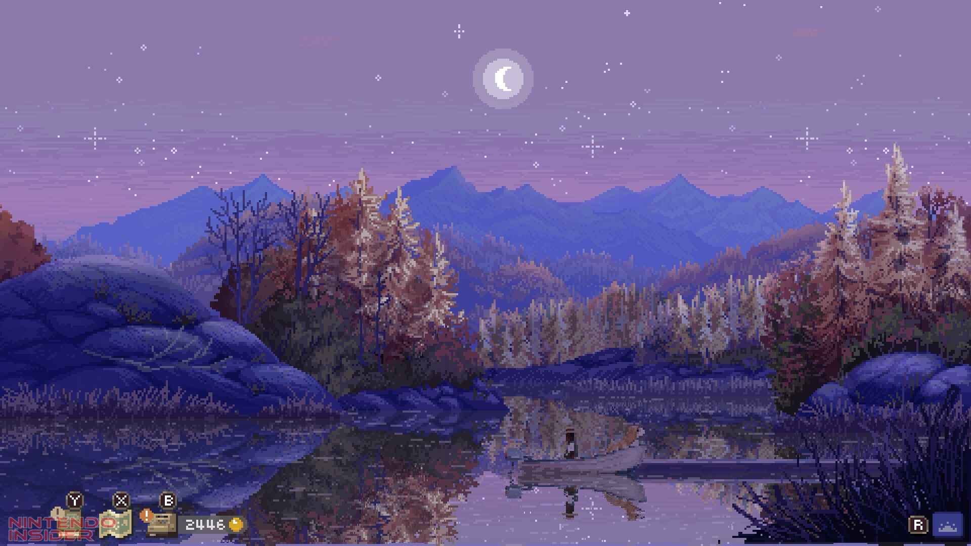 I mentioned being impressed by the pixel art, but it truly is incredible in motion and on the Switch 2 itself, with high resolution and smooth animations across the board. Even changing the time of day has a slick animation with the colors changing on the screen. Every fish icon or tree in the environment, with its reflection in the water, looks meticulously crafted. You could have any screenshot from Cast n Chill work as a wallpaper as well. It is that good. After being floored by the first location, Cast n Chill just kept getting better as I unlocked more locations and saw how they looked at different times of the day, like the lighthouse area in the evening