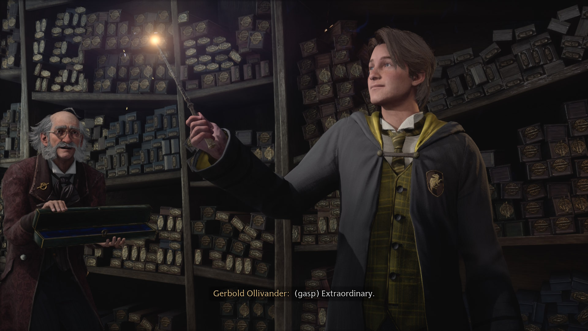 Hogwarts Legacy wastes no time in thrusting you headfirst into the Wizarding World. Within the game’s opening hours, you have hurtled your way around Gringotts Bank’s spiraling mine cart tracks, had the Sorting Hat placed on your head to deliberate which Hogwarts House to place you in, mastered Levioso in your first Defence Against the Dark Arts class, used Accio to compete in an outdoor Summoner’s Court match, had Gerbold Ollivander help you choose your wand, and invoked Ancient Magic to topple a Troll attacking Hogsmeade.