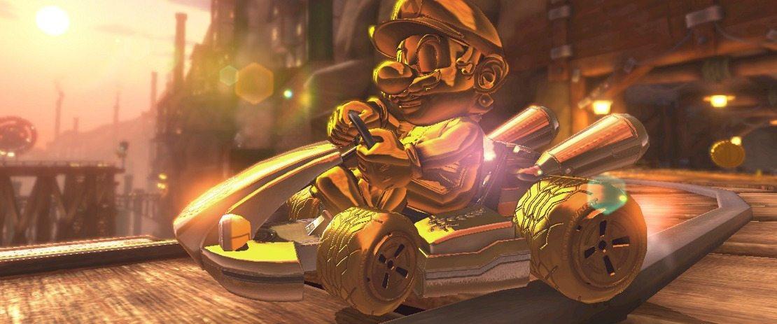 In order to unlock Gold Mario in Mario Kart 8 Deluxe, you must earn a gold trophy in every Cup at 200cc in Grand Prix mode. Once achieved, he will be unlocked.