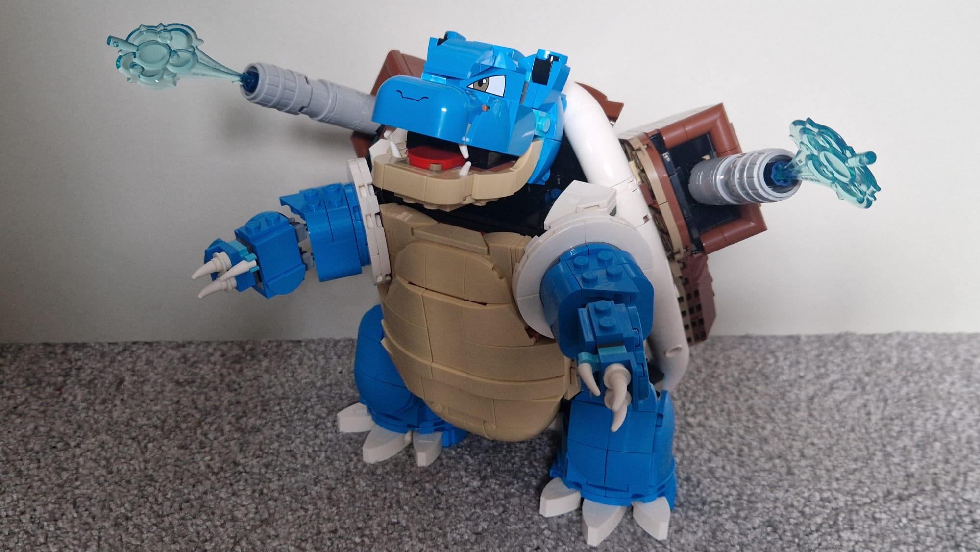 Blastoise, much like Venusaur, truly does look the part, his bulky structure actually lending itself well to LEGO because while he may not have much in the way of posable options, that actually suits him, as in the games and shows, he’s never been a Pokémon to flex his manoeuvrability. Perhaps my favourite part of Blastoise, though, is his shell, built in segments and displaying his iconic cannons with water jet pieces firing out. He’s incredibly sturdy, too, a hefty set when holding in your hands, with perhaps only his two back claws on his feet easily knocked off.