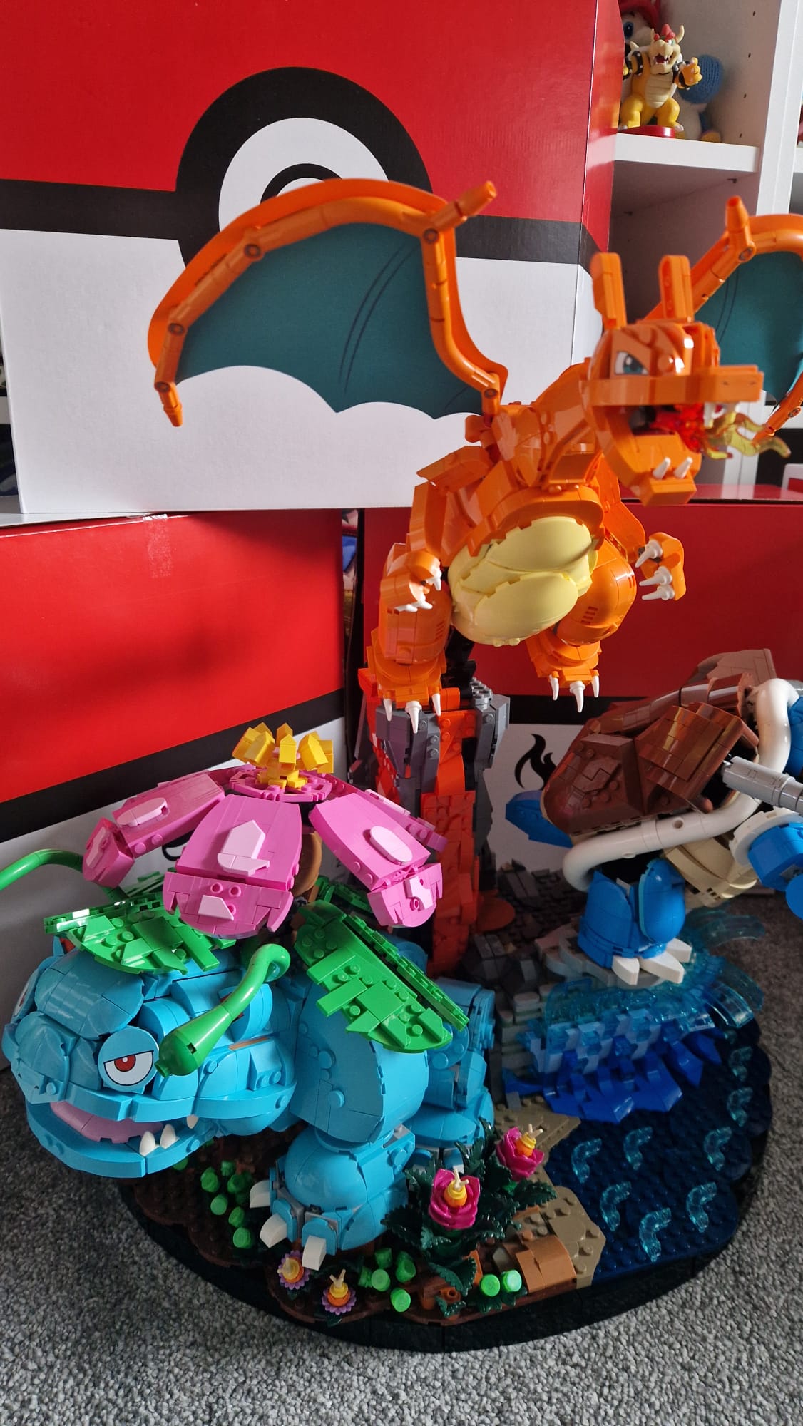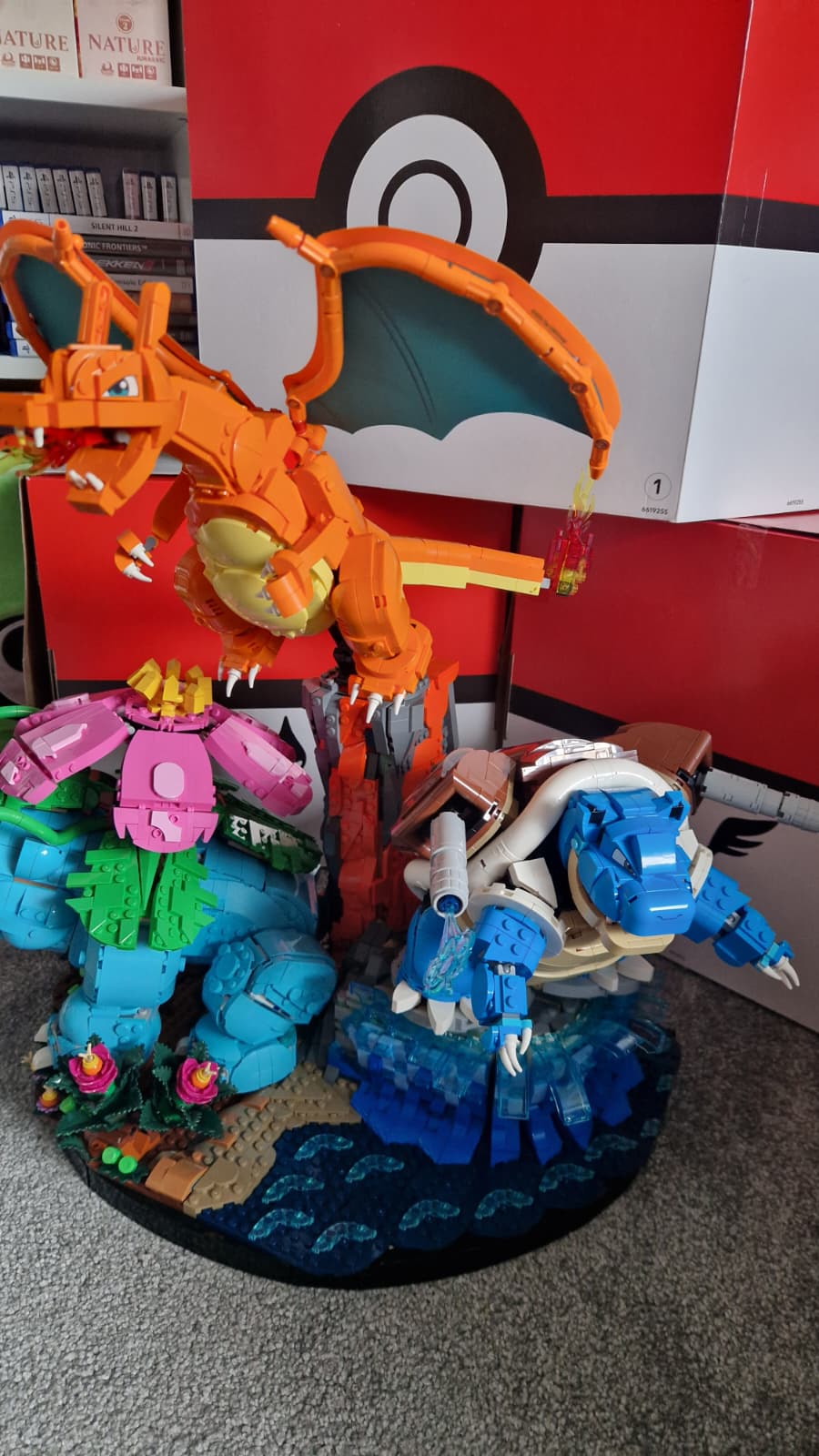 With all three bases and Pokémon built, it was then a case of bringing them together. I was a little surprised to see that the bases do not actually connect but rather slide in next to each other. It’s not so much a problem as this is a display piece rather than one to play with, but worth noting. Of course, you’re free to separate the Pokémon and display them on their own, like Eevee or Pikachu, but really, this is a set designed to be kept together (if you have the space, of course).