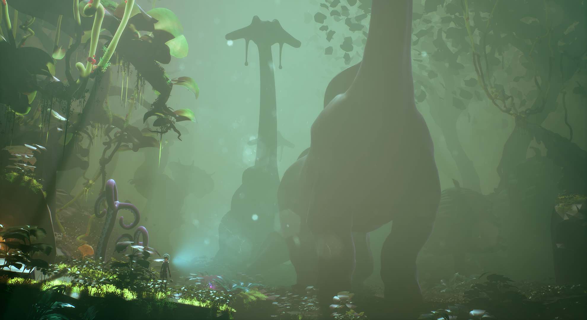 The effect that daytime has on the world around you truly brings out an allure of organic beauty in the landscapes. Plants will open up in interesting ways by spreading their leaves or teasing the lands with its juicy nectar under the beaming sunlight. Meanwhile, under the stars brings its own party of natural lights and lunar-dwelling wildlife that will hunt or aid you along the way. It’s a primary tool that you use for puzzle solving, and the only protection that the defenceless spaceman has to offer.